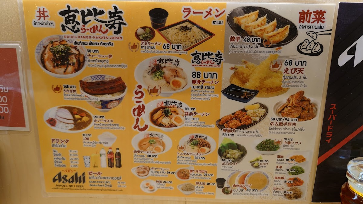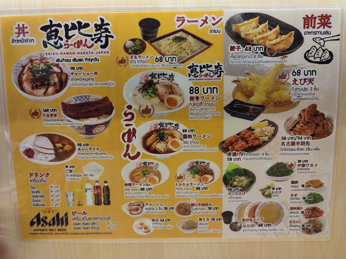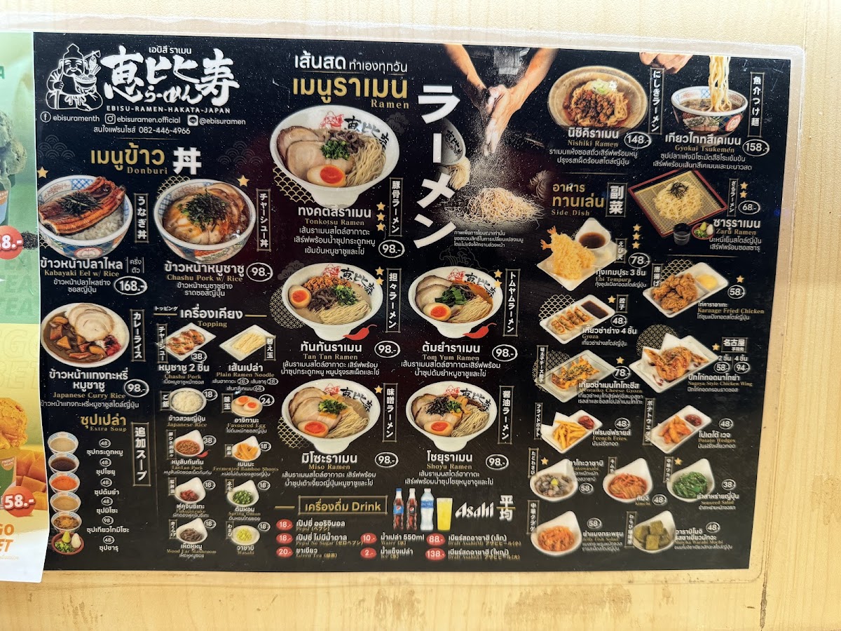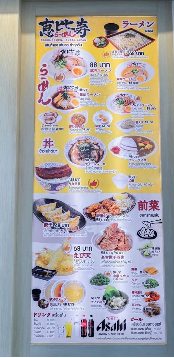 Ebisu Ramen - เอบิสึ ราเมน สาขา เมย์แฟร์มาร์เกต โคราช offers an authentic Japanese ramen experience nestled in the vibrant Mayfair Food Park of Nakhon Ratchasima. The menu shines with classic dishes like Tonkatsu Ramen, featuring a rich, flavorful broth and tender chashu pork that warm the palate. For those seeking lighter options, the Saru Ramen presents a subtly sweet, clear soup paired with perfectly cooked noodles. Complement your meal with crispy gyoza, served fresh with a unique, slightly sweet dipping sauce that distinguishes Ebisu from other ramen spots. The restaurant balances quality and affordability, making it an inviting choice for locals and visitors alike. With quick service, a welcoming Japanese-themed ambiance, and highlights like Asahi draft beer, it’s a perfect place to enjoy comfort food with an authentic touch. Whether dining at the outdoor counter or the air-conditioned interior, Ebisu Ramen promises a satisfying, flavorful journey through Japan’s beloved noodle tradition.